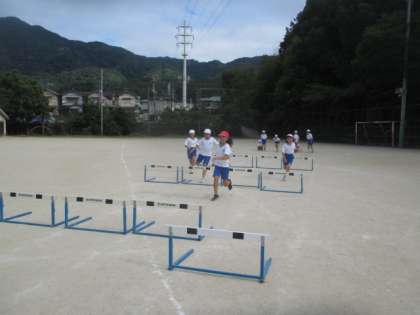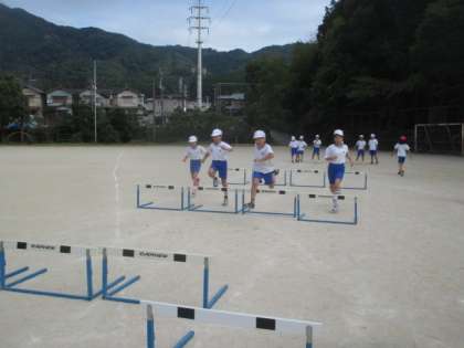 運動会が終わり、ハードル走を学習しています。