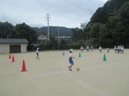 サッカーの学習が始まりました。サッカーを習っている子たちを中心に、チームメイトにやさしく教えてくれています。