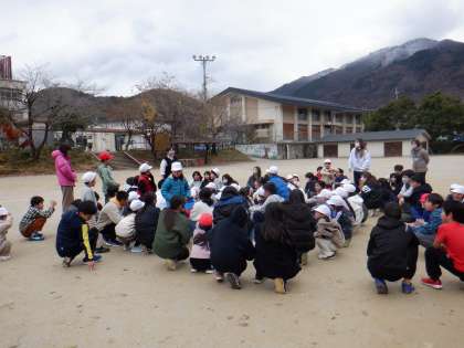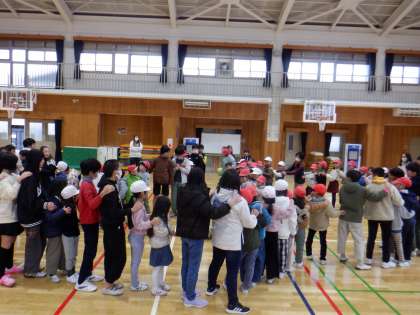 2学期の最後に、1年生と6年生のみんなで遊びました。ジャンケン列車をしたり、おにごっこをしたり、だるまさんがころんだをしたりしました。