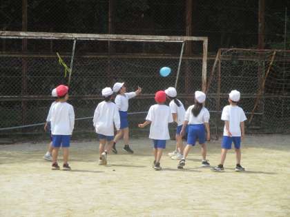 3年生最初の体育は、体ほぐしの運動です。今日は少し肌寒かったので、まずはおにごっこで体を温めました。その後1組は風船バレー・2組はボールリレーをしました。それぞれのクラスとも、友達同士声をかけあって協力する姿が見られて、とても楽しそうでした。
