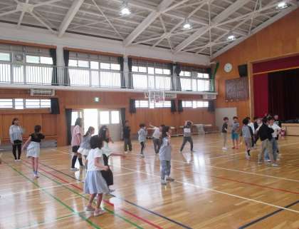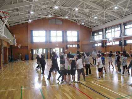 後半は体育館でレクリエーションの1つである「猛獣狩り」をしました。みんなで声を掛け合いながら、グループ作りを楽しんでいました。今後は活動班を決め、班で係決めをしていきたいと思います。