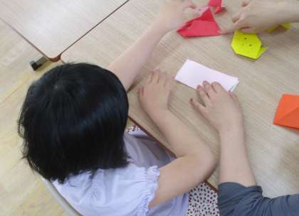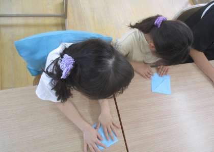自立活動の時間に、折り紙を折りました。今回は、パクパクと動く仕組みを生かした作品を作りました。高学年が中心になって折り方を教えてくれ、みんな出来上がった作品を見せ合いながら、楽しく遊ぶ姿が見られました。