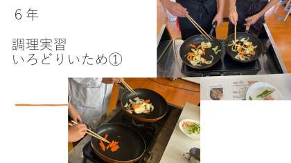 今日は前から計画していた調理実習をしました。各グループで決めためあてに向かって協力して実習しました。朝食から健康な1日の生活を送るために、朝食の役割を考え本日の実習に行いました。栄養のバランスを考えて野菜のたくさん入ったいろどりいためを作りました。子どもたちとても楽しそうに、そして上手に調理をしていました。ぜひお家でも今日の感想を聞いてあげてください。