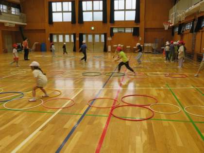 学級活動の時間に、体育館でクラスごとに遊びました。