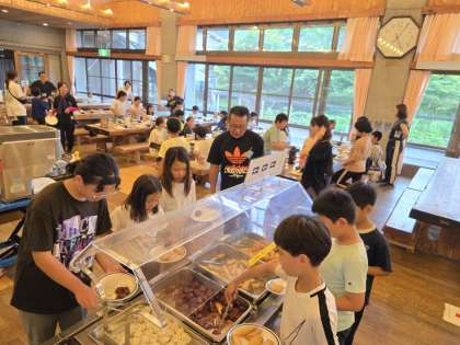 キャンプファイヤーに向けていっぱい食べるぞー!