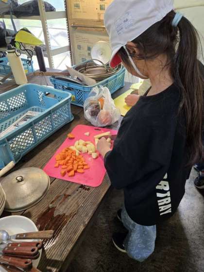カレー係、野菜の切り方も素晴らしい。