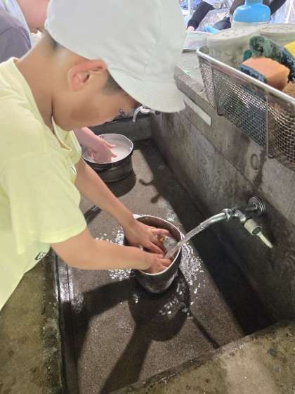 あれれ、野菜の皮を洗ってる…