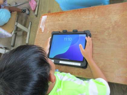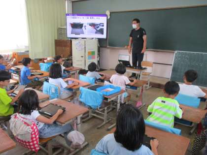 1年生に、i padが届きました。初めてのipadにわくわくドキドキのみんなでした。