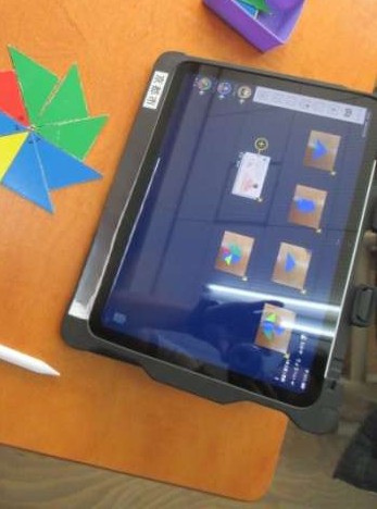 算数科の学習で、三角形の色板を並べて形を作るという活動をしました。「次は何を作ろうかな」「この向きでいいかな」など、パズルをはめるようにして、色板をどのように並べればよいか考えていました。作った形は、iPadで写真を撮って記録しています。iPadで写真を撮ったり、カードに書き込んだりすることにもだいぶ慣れてきました。