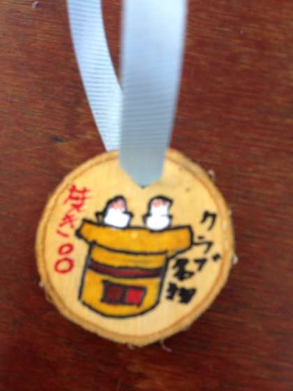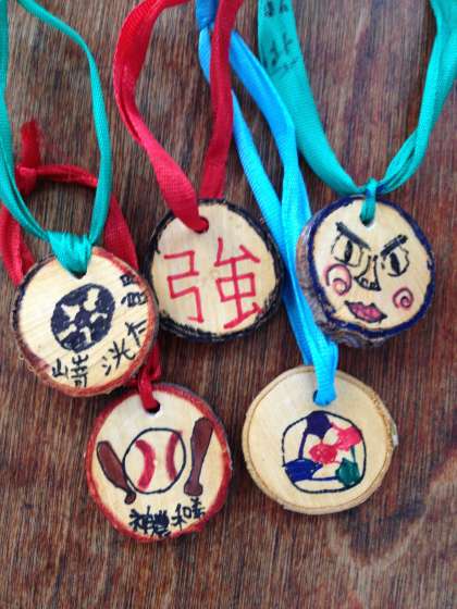学校の桜の枝を,管理用務員さんに切ってもらってキーホルダーを作りました。自分の好きな絵や文字を入れて素敵なキーホルダーができましたね!