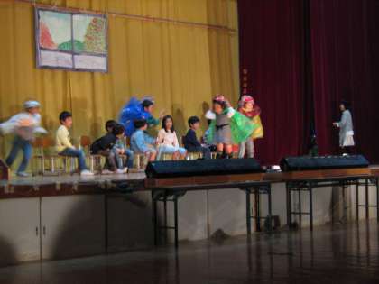再々延期でご迷惑・ご心配をおかけしていた学芸会が今日から始まりました。低学年(5日)・高学年(6日)・中学年(9日)と,変則的な開催ですが,これも新型インフルエンザの影響。子ども達は再々の延期を感じさせない元気いっぱいの演技を見せてくれました。お時間の都合がつくようでしたら,6日・9日はぜひご来校ください。