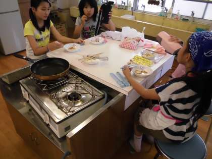 今日の家庭科クラブは,校内の畑で収穫したジャガイモを使って,じゃがバターをつくりました。初めての調理だったので,はじめは戸惑いましたが,6年生を中心に活進めることができました。上高野のジャガイモは自分たちで収穫したこともあり,新鮮でおいしかったです。楽しそうにニコニコしながら活動することができました。