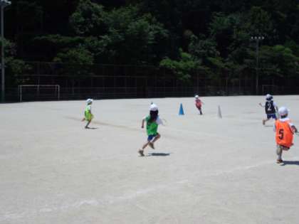 チームのリーダーさんは,ちゃんと自分でビブスを用意して体操をする声かけができています。素晴らしい!力を合わせて体操をしたあとは,ちゃんと作戦会議とバトン渡し特訓をしています。素晴らしい!今日はチャレンジの中学生にもアドバイスをもらい,「めっちゃうまくできるようになった!」「やっと勝てた!」「いきなり速くなった!」と大喜びでした。