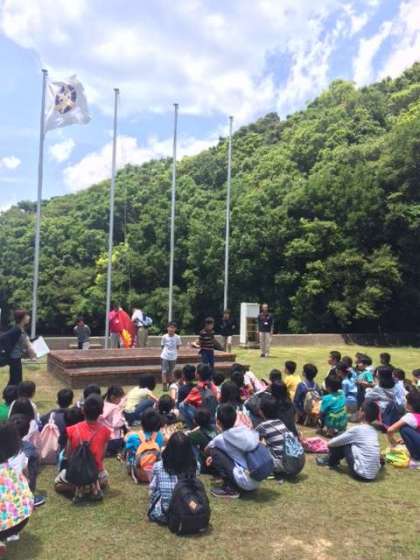 みさきの家に到着しました。入所式の様子です。こちらも良いお天気です。持ってきたお弁当を食べた後,浦山ラリーに向けて,準備をします。