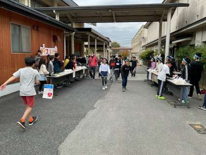 学習発表会の日、午後からお米の販売を行いました。各クラスでお店の準備をし、役割分担をして接客や呼び込み等、お米を売るためにがんばっていました。おかげさまで120袋全部売り切れました。お買い求めいただいた皆様、ありがとうございました。