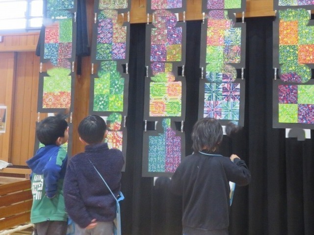 図画工作展を鑑賞しました。子どもたちは、いろいろな作品のいろいろな良さを見つけていました。