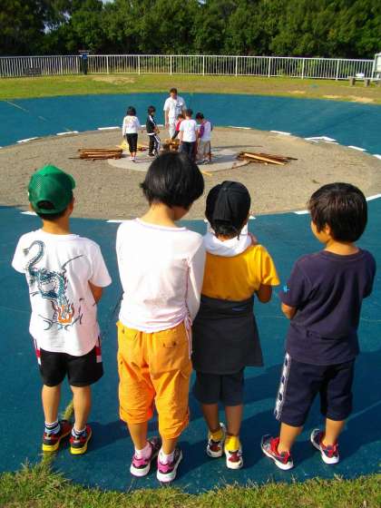 キャンプファイヤーの準備を,陽が高い時にしています。ファイヤーだけでなく,全ての活動において,このように準備をしておいてくれる人がいたので,安全で楽しい活動ができたのですね。
