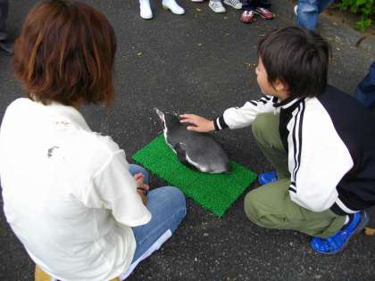ペンギンタッチは,特別に穏やかな性格のペンギンでないとできないそうです。ここでペンギンにタッチしたからといって,他のペンギンに手を出すととんでもないことになるようです。