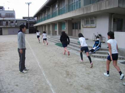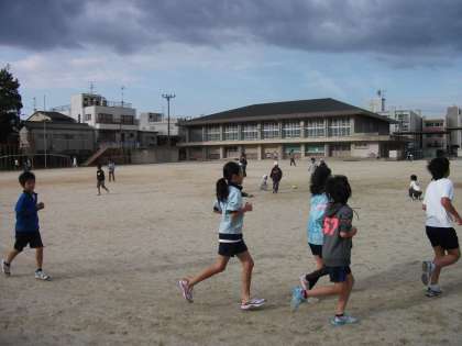朝休みに走る6年生