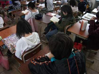 修二小の毎週月曜日の朝学習は,『全校朝読書』です。8時40分〜55分の15分間は,静かなBGMが流れる中,全校一斉に読書をしています。