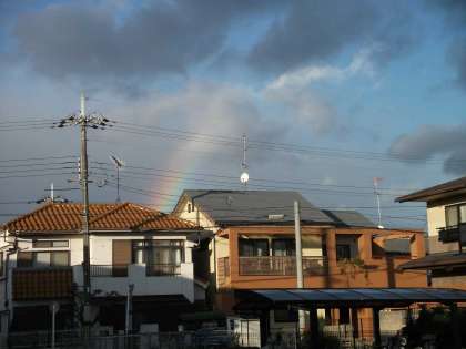 時雨れることが多くなり,冬の到来が近づいています。この日は東門から虹が見えました。夕方の光が強烈に差し込んでいる時に,反対側の方向に虹が見えました。これからも,そういう気象条件の時に虹を見つけてください。