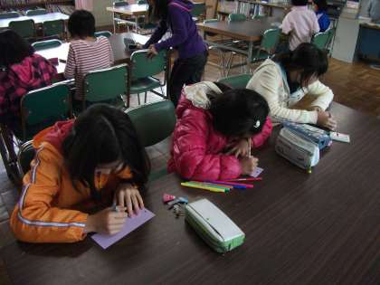 読書週間のいろいろな取組の一つが『しおり作り』です。