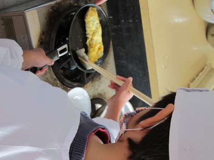3,4時間目に、家庭科室で『たまごやきづくり』に