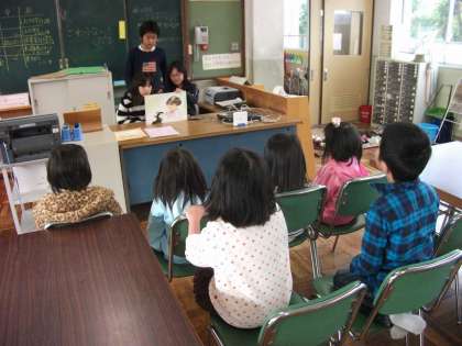 この日は,6年生の図書委員が,図書室で紙芝居の読み聞かせをしてくれました。3人で読むパートを分担して,上手に語ってくれていました。