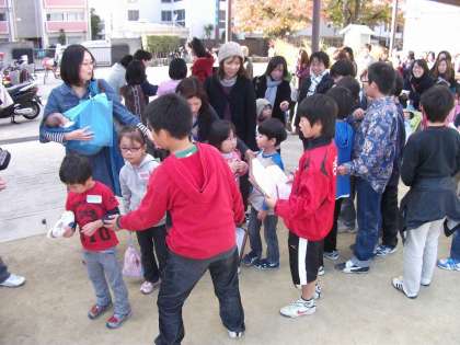 ここから5年生のお兄さん・お姉さんに連れられて検診会場を回ります。