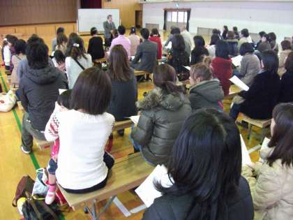 就学時健康診断に子ども達が回っている間,保護者の方には,体育館で学校長と下鴨警察交通課の方のお話を聞いていただきました。