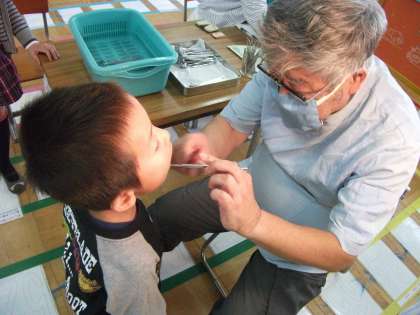 健診は,校医さんに診ていただきました。誘導だけでなく,健診会場のお世話も5年生の児童が手伝ってくれました。