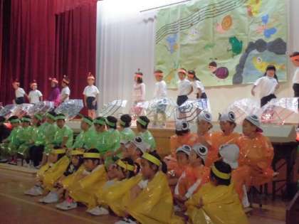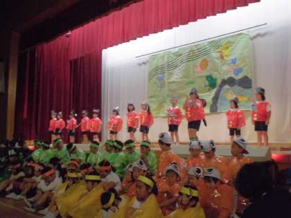 いよいよ明日は,はじめての学習発表会です。1年生は,それぞれの役になりきり,せりふを言ったり踊ったり,歌を歌ったりします。今日は,リハーサルを行いましたが,これまでの練習の成果を発揮し,みんな堂々と演技することができました。明日は,全員が笑顔で最後までやり切れたらいいなと思います。