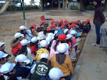 色とりどりの葉っぱやどんぐりを見つけては大喜びの様子でした。