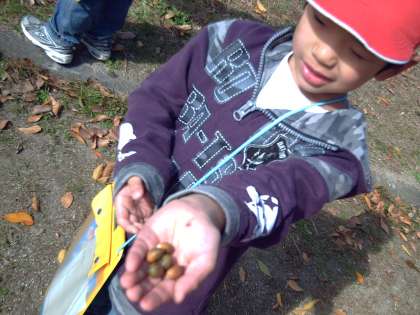 落ち葉だけでなく、どんぐりもたくさん落ちていました。