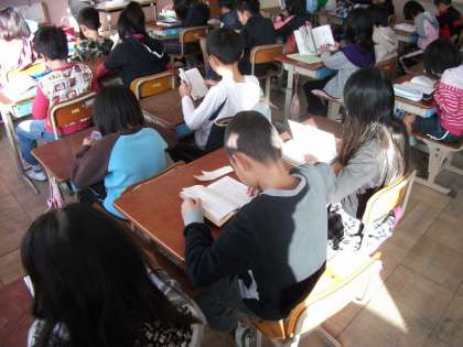 写真は,読書週間の3年生の様子です。この学級は,無人かと思うほど静かに全員が集中していました。