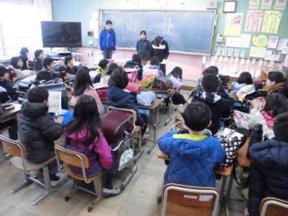 今日の5時間目に最後の町別集会を開き,通学路で新たに危険になっている箇所はないかなどについて話し合いました。また,来年度の班長,副班長,書記も決めました。同じ地域に住む子ども達が交流して,なごやかな時間を過ごしました。