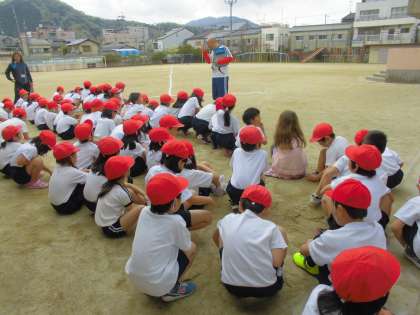 今日は学年で体育をしました。2年生になって初めての体育は50m走を走りました。去年走った時はまっすぐ走れなかったみんなが,ゴール目指して一直線に頑張って走っていました。1年生と比べても3秒も早くなっている子もいてとっても素敵な成長を見ることができました。