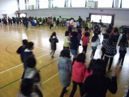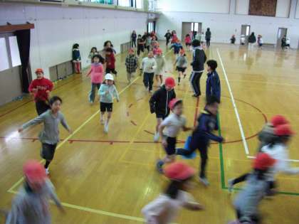 明日の本番を控えて,今日1月19日は,低学年と高学年が交代で体育館で全校マラソンをしました。