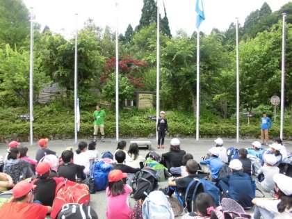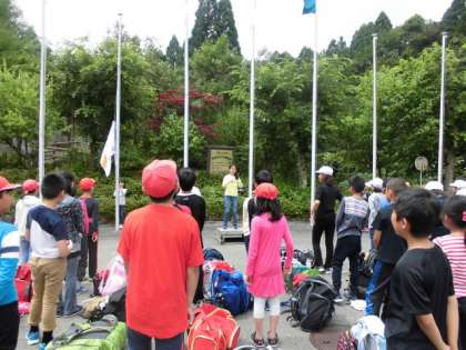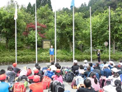 予定通り10時に花脊山の家に到着しました。玄関前広場で入所式をしました。
