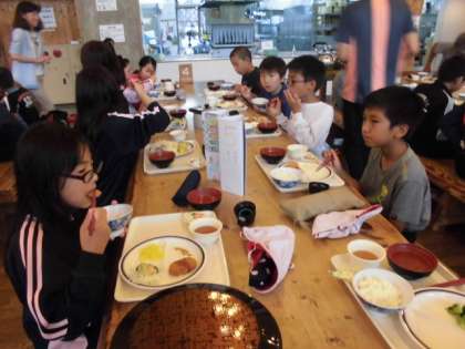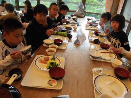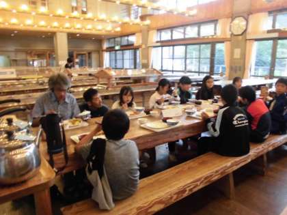 お風呂に入ってから,夕食を食堂で゜いただきました。バイキングでクリームコロッケやロールキャベツ,白身魚のフライ,肉じゃがなどをおいしくいただきました。