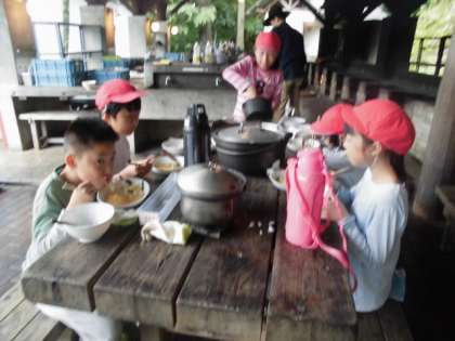 みんなで協力しておいしくできました。ご飯もほとんどの班が焦がさず上手にたけました。ちょっと水が多くてやわらかくなってしまったところはありましたが。