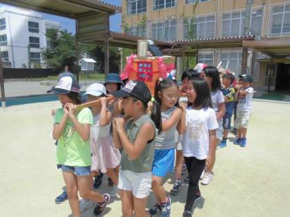 総合的な学習では「八大神社調さたい」をしています。色々な人にインタビューをして聞いたことを生かして,自分たちでもお祭りをすることになりました。