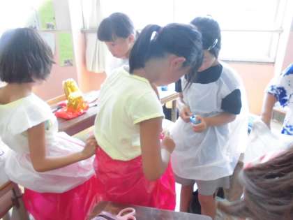 お世話になった人に招待状を作ったり,おみこしやおはやしの道具や祭具やはっぴなども作ったりしました。いよいよ,明日(20日)「修二三年祭り」をします。