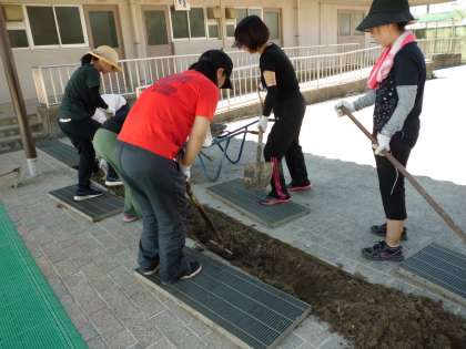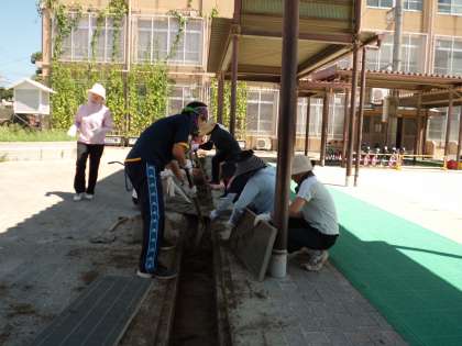 教職員で環境整備を行いました。グランドのラインテープの張り替えと溝掃除です。夏休みが終わると,運動会の練習も始まります。 活動しやすい環境でのびのび練習することが出来るでしょう。