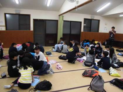 今日一日を振り返り,反省会をしました。ナイトハイクや野外炊事が楽しかったようです。全員元気です。就寝準備をして,9時半には就寝します。では,おやすみなさい。