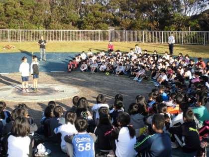おはようございます。みさきの家宿泊学習2日目になりました。4年生は,熱を出す子もなく,全員元気です。東山泉小学校の5年生と一緒に朝の集いが行われました。学校紹介もしっかりできました。
