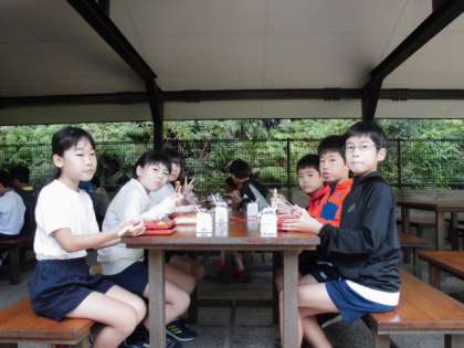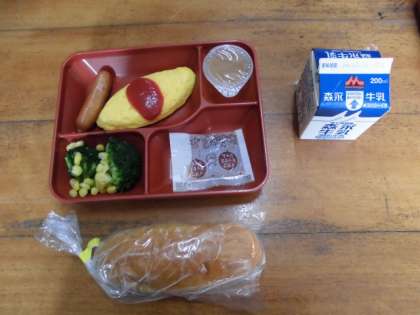 今日の朝食はパン・牛乳・オムレツなどでした。今日の活動のエネルギーのもとです。みんな,しっかり食べました。
