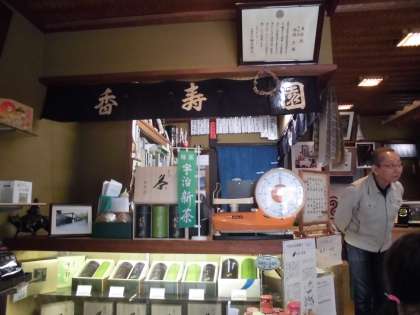 お茶屋さんの「香寿園」,本屋さんの「恵文社」,カフェの「カリン」での見学の様子です。