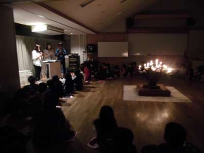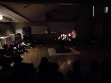 ボンキャンドルファイヤーをしました。山の家で頑張りたいこと,5年生として頑張りたいことなどを考えました。また,先生方より5年生のみんなにメッセージがありました。最後には,担任の3人の先生方より,リコーダーの演奏のプレゼントがあり,みんなうっとりと聞き入っていました。