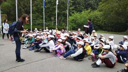 朝7時より、宿泊している7校の全員が集まって朝の集いをしました。眠そうな人もいますが、全員元気です。